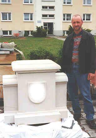 Der Säulenkopf mit Stadtwappen von Stadt Wehlen wird inzwischen im