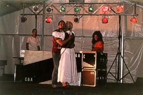 ![]() Abends im Festzelt: Disco mit C&A, neben gewohnt guter Musik hat DJ Christian Bieselt auch immer so einige Beiträge auf Lager. Hier muss Steffi dran glauben und mit ihm einen Tanz absolvieren (Motto: erster Annäherungsversuch"), während die heimlichen Gedanken der beiden als Sprechgesang dazu erzählt werden. |