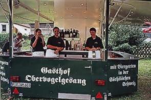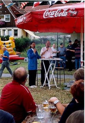 gab es Kinderprogramm, es wurde gebaut und gebastelt. Auch die Hüpfburg erfreute sich großer Beliebtheit. ![]() < Derweil haben nun auch "Tom und Olle" begonnen und strapazieren die Lachmuskeln der Zuschauer und Zuhörer, aber auch Doppeldeutiges und Nachdenkliches gab es, so wie wir es von den beiden gewohnt sind. Bei gepflegtem Bier vom Gasthof Obervogel- gesang verging die Zeit viel zu schnell. |