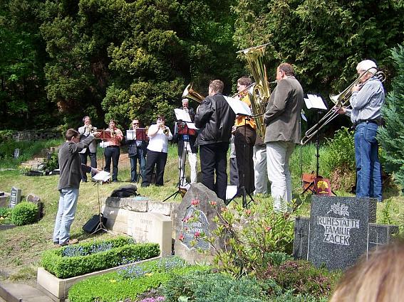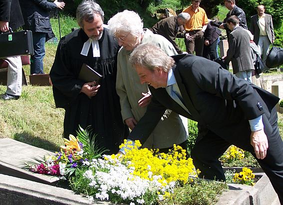 Bürgermeister Tittel einen Blumenstrauß auf Märkels Grab niederlegt.