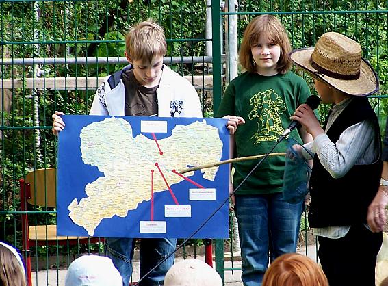 Laudatio - rechts: Die Schüler zeigen Gebiete in Sachsen, in denen Märkel Käfer sammelte.