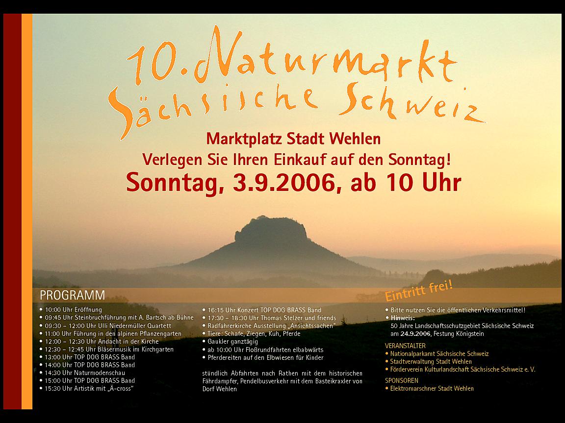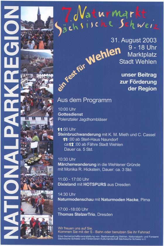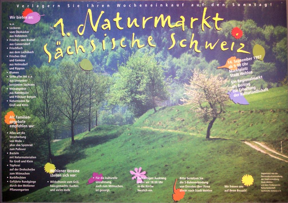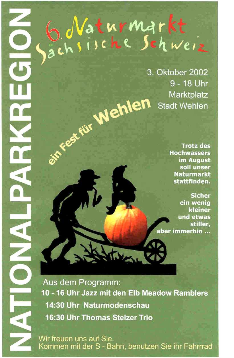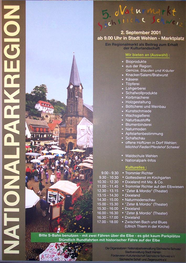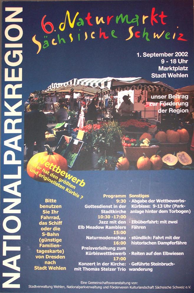 *) Anmerkung zu 2002: Der am 1. September angesetzte 6. Naturmarkt [Plakat 1] musste wegen Hochwasser ausfallen,