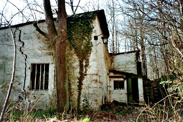 Doch - das Haus bietet einen traurigen Anblick, das Innere ist total zerstört. Das Haus war ursprünglich zum Aufenthalt, als Kantine oder Meisterbüro im Mehnertschen Steinbruch gebaut worden. Pol Cassel mietete es im Jahre 1921 als Sommersitz an und war fortan - Dank eines selbstgebauten Kachelofens - nicht nur im Sommer hier. Hier entstanden viele seiner Natur- und Tierbilder, vor allem mit Katzen und Hündin Panje, was ihm in Dresden sogar den Namen „Katzenmaler“ eingebracht hatte. |
