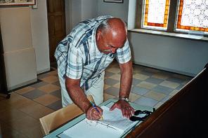![]() Bürgermeister Milos Repa trägt sich in das Gästebuch unserer Stadtkirche ein. |