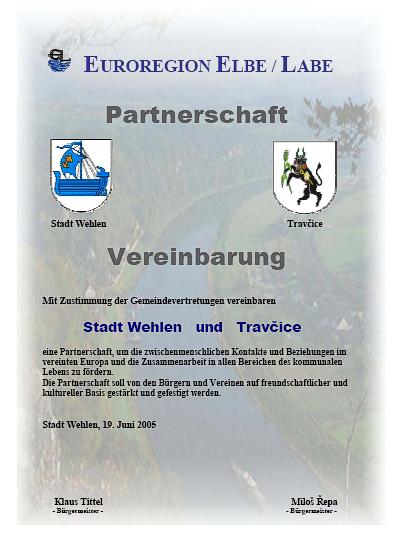 zwischen Stadt Wehlen und Travcice (Tschechien) unterzeichnet Den