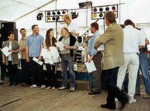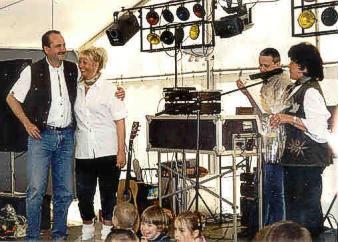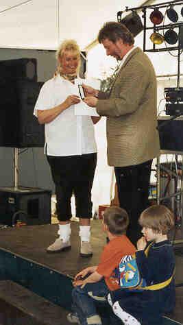gemein- sam mit Dr. Rainer Schumann, dem Bürger- meister der Gemeinde Struppen, verdienstvolle Helfer aus Pötzscha, Naundorf und Struppen aus. Er verlieh im Auftrage des Sächsischen Ministerpräsidenten Hans-Georg Milbradt den Sächsischen Fluthelferorden mit Urkunde an 46 Helfer, die ihn stellvertretend für viele, viele weitere ungenannte Helfer entgegennahmen. Natürlich erhielt auch Steffi Venus den Orden mit bewegenden Dankesworten und einem Blumenstrauß aus der Hand des Bürger- meisters. |