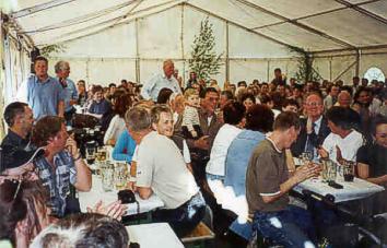 ![]() Das aufgebaute Bierzelt ist auch drinnen gut gefüllt. |