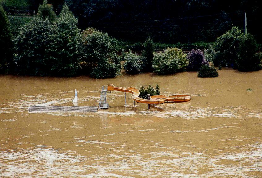 Erlebnisbad vor dem Hochwasser, kurz nach seiner Einweihung im Jahre 1999