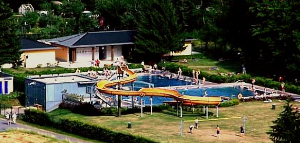 wiederaufgebaute Erlebnisbad, aufgenommen am 09.07.2006, von der Wilke-Aussicht.