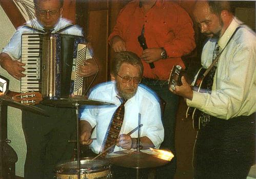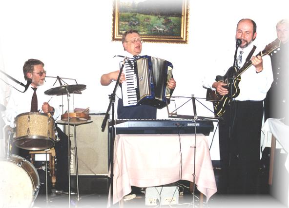 ![]() Tanzabend im "Deutschen Haus" in Königstein, v.l.n.r.: Gerhard Niese, Rainer Bartko, Christian Neise, Gerold Aehlig (hinten), Uwe Kunze |