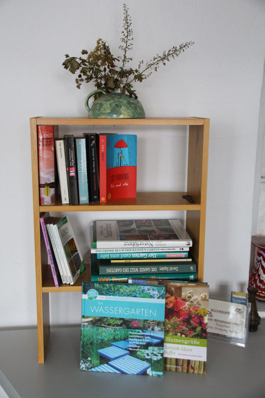 Im Obergeschoss des Heimatmuseums im Pflanzengarten finden Sie eine kleine Buchinsel mit Lektüre zu Gärten und Pflanzen aber auch den ein oder anderen Roman oder Krimi. Und viele lauschige Plätzchen, um sich in ein Buch zu vertiefen, gibt es im Pflanzengarten gleich mit dazu.
