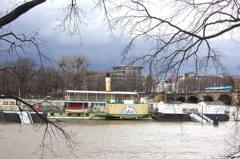 sie hat - fest und sicher - am Kai (am Terrassenufer) in Dresden festgemacht,