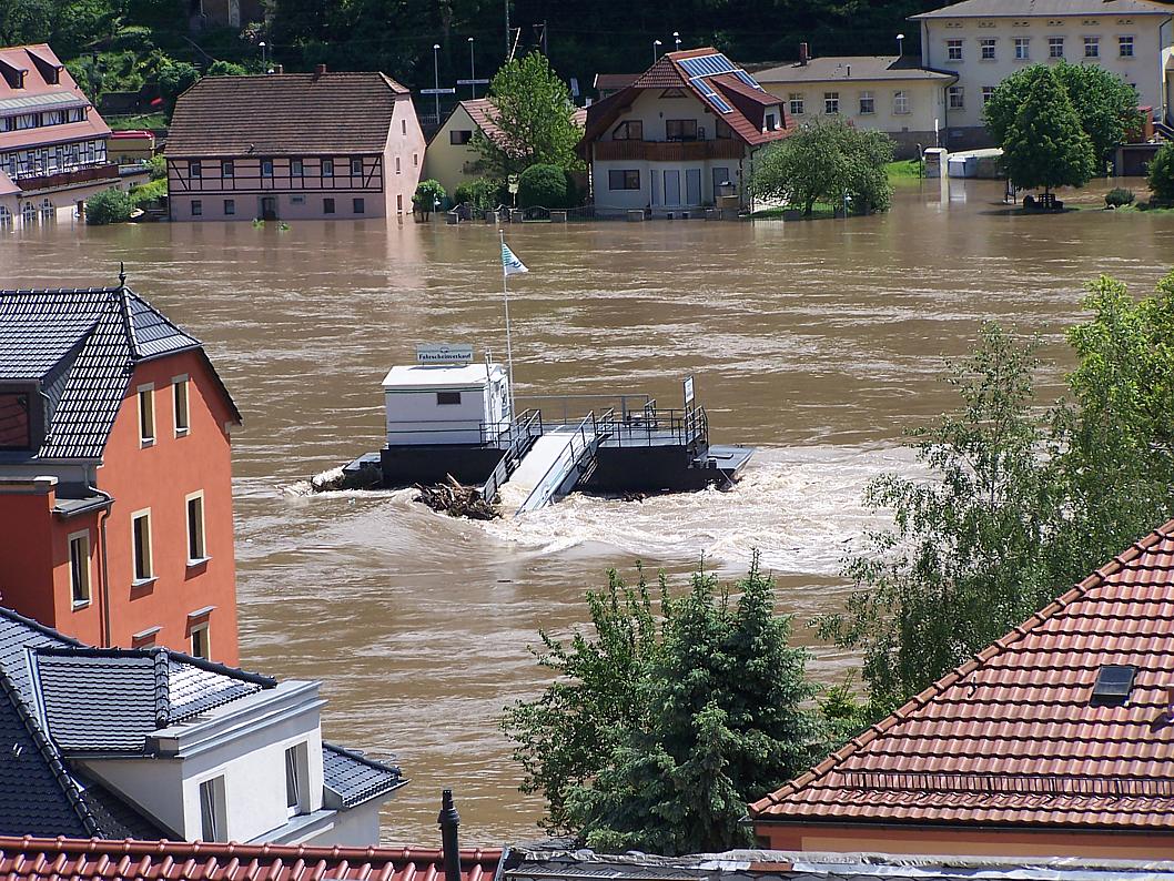 2013: Nach 2002 zweites "Jahrhundert"- Hochwasser in Stadt Wehlen / Sächs. Schweiz (3)