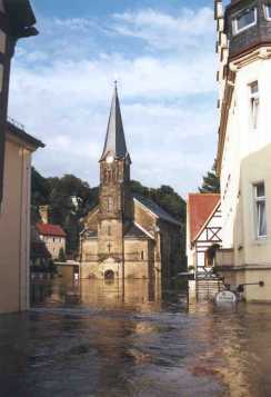 Auch unsere Kirche wurde stark in Mitleidenschaft gezogen, das Wasser stand im