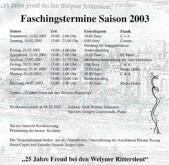 Thema: - Niederschrift der 41. öffentlichen Sitzung des Stadtrates am 21.01.2003 - Vollzug der Straßenverkehrsordnung (StVO) ... Bewohnerparkausweise hier klicken >> Formular zum Ausdrucken << hier klicken - Härtefall-Richtlinie der Sächsischen Staatsministerien für Soziales und für Wirtschaft und Arbeit für die Gewährung von Zuwendungen aus dem Spendenaufkommen für durch das Hochwasser vom August 2002 Geschädigte (vom 30. September 2002) - Rückblick - Ein Beitrag von Wolfgang Thomas, Bergweg 1a, Stadt Wehlen - Ausschreibung zum 23 Bergtest bei Wehlen am 29.03.2003, Veranstalter: Dresdner Wanderer- und Bergsteigerverein e.V. . |