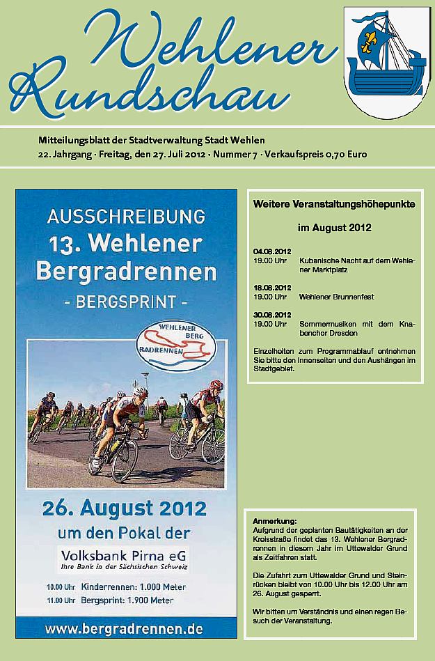 - Informationen zum 13. Wehlener Bergradrennen am Sonntag,